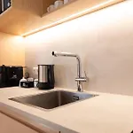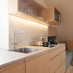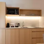 Eine Mikrowelle, ein Wasserkocher und ein Kühlschrank gehören ebenfalls zu einer kompletten Küche.